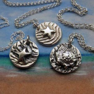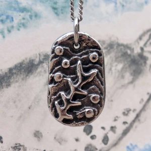 I make jewellery with its heart and soul by the sea. My work is predominantly made from recycled silver cast in cuttlebone scavenged on the beaches of Sussex, Hampshire and Cornwall. It’s an ancient technique which produces unique pieces, each with a distinctive character and texture.