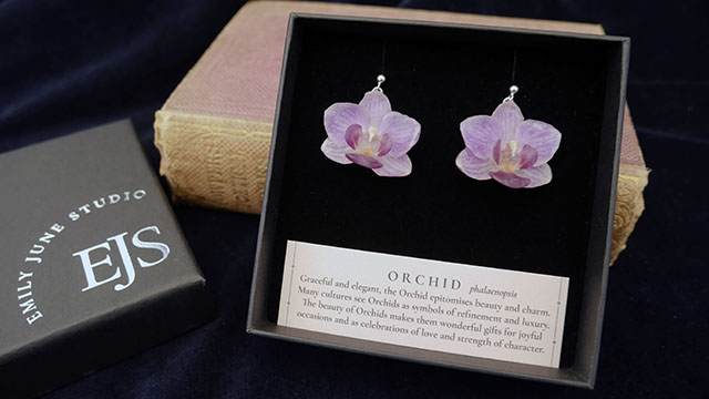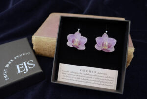I create real botanical jewellery set in 925 sterling silver, bringing together traditional craftsmanship and nature’s finest elements. Using handpicked flowers and botanicals that I grow and nurture in Hampshire, I preserve each piece through a delicate, bespoke process of my own design. Each piece is created over approximately a two-month period and honours both the natural colour and true form of the flower, allowing its individual beauty to endure.
