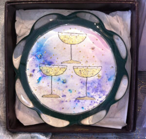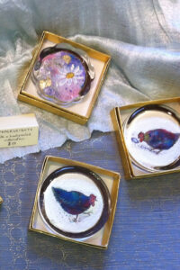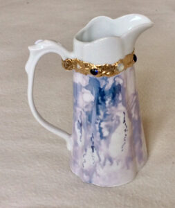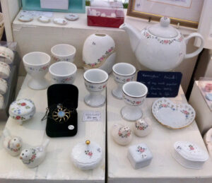 A very steady hand and much patience are needed in order to achieve the delicate touch required for such fine work, where the depth is built up gradually by layers of paint applications, with a kiln firing following each. Sometimes an edging of 22ct gold is added to give that final finish to a beautiful piece. Occasionally I also use metallic lustres and dichroic glass. Typically I display hand-painted, high quality fine china or porcelain pieces, such as vases, teapots, egg cups and trinket boxes, alongside other decorative items.