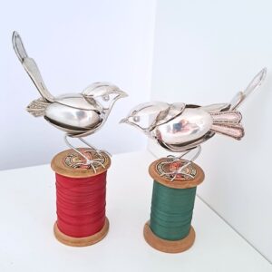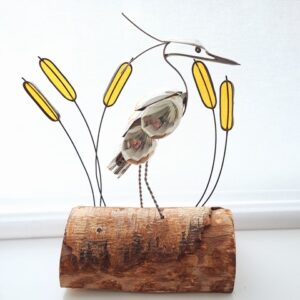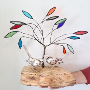 Everything is hand crafted by me using reclaimed, found and vintage materials including cutlery, stained glass and driftwood.